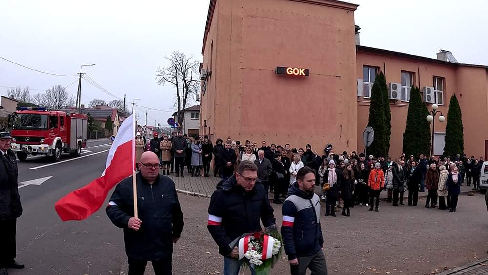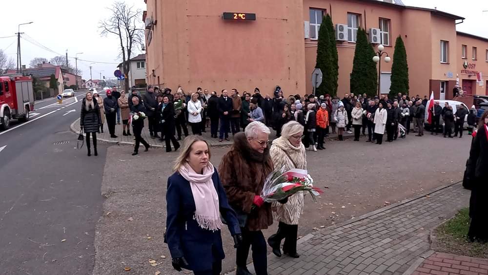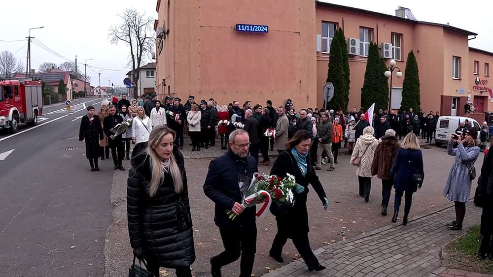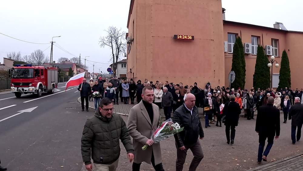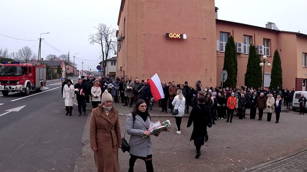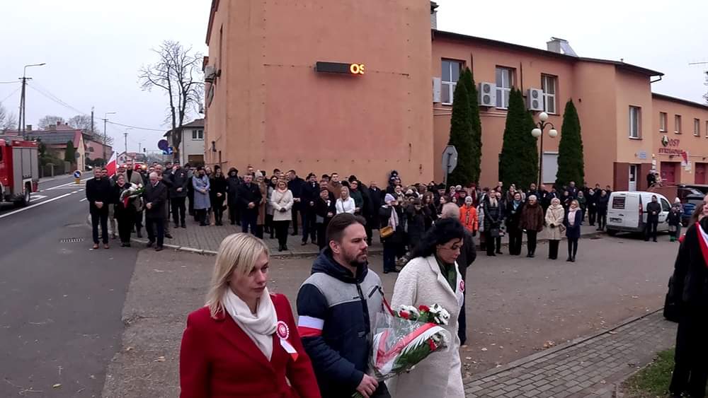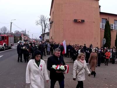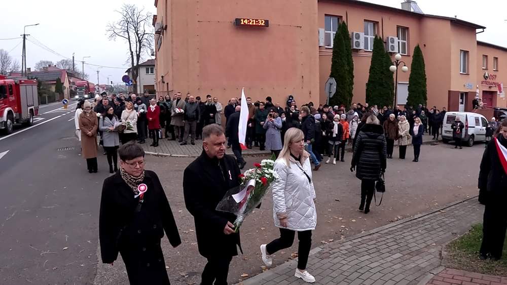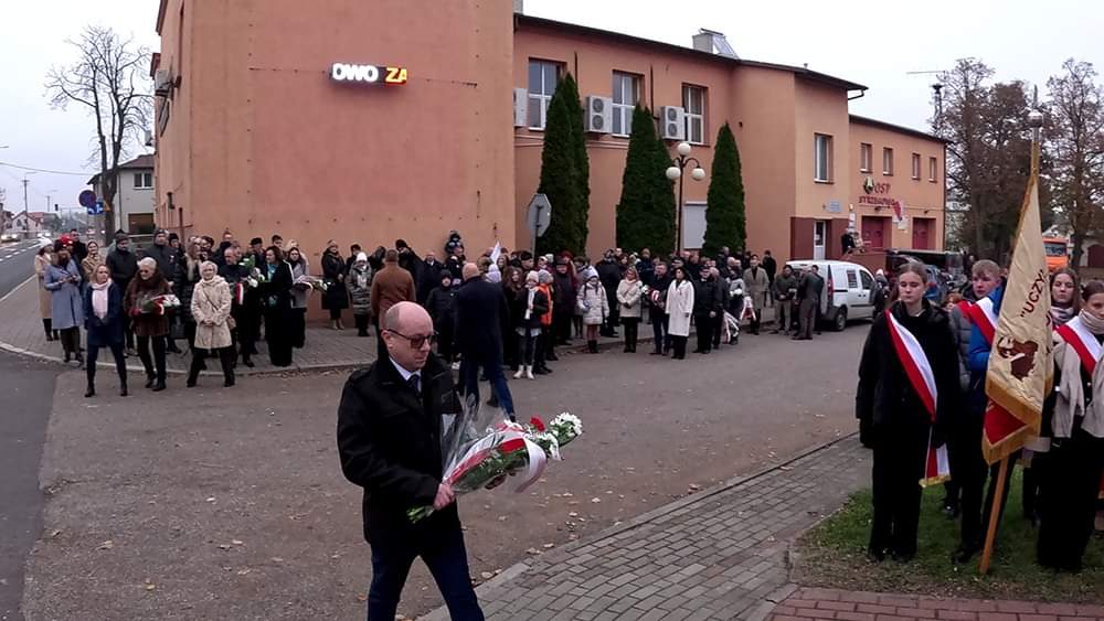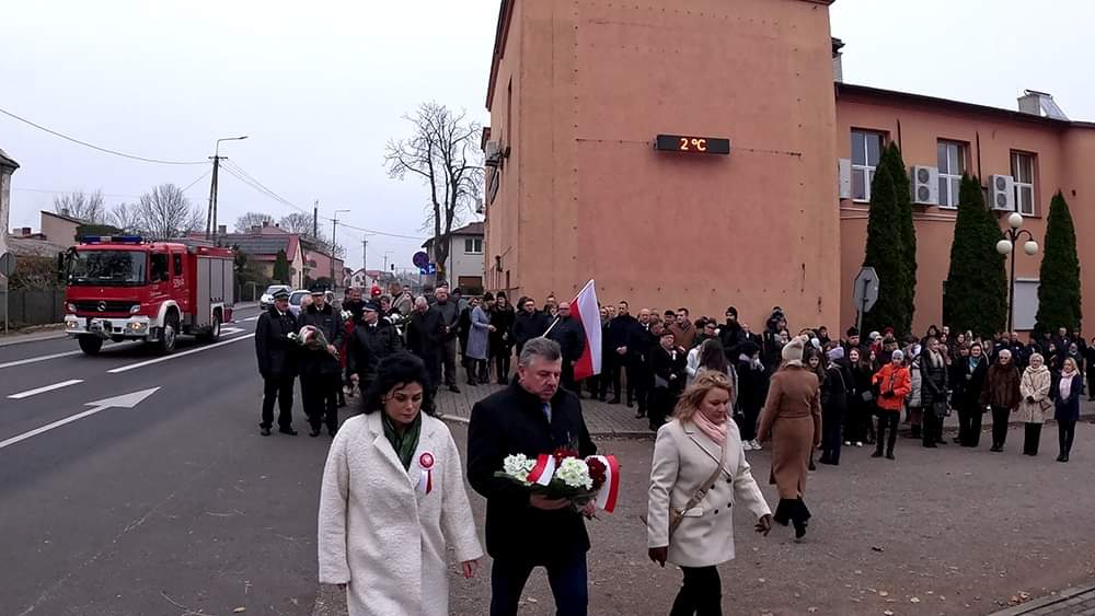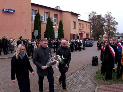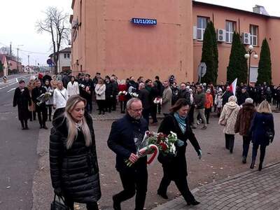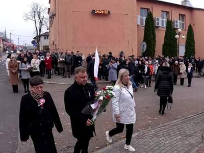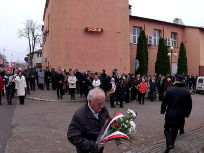 Następnie uczestnicy uroczystości, w tym poczty sztandarowe i delegacje przeszli pod pomniki upamiętniające poległych za wolność Ojczyzny oraz złożyli kwiaty.