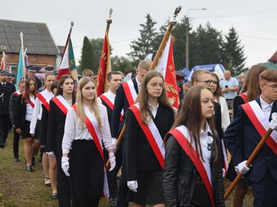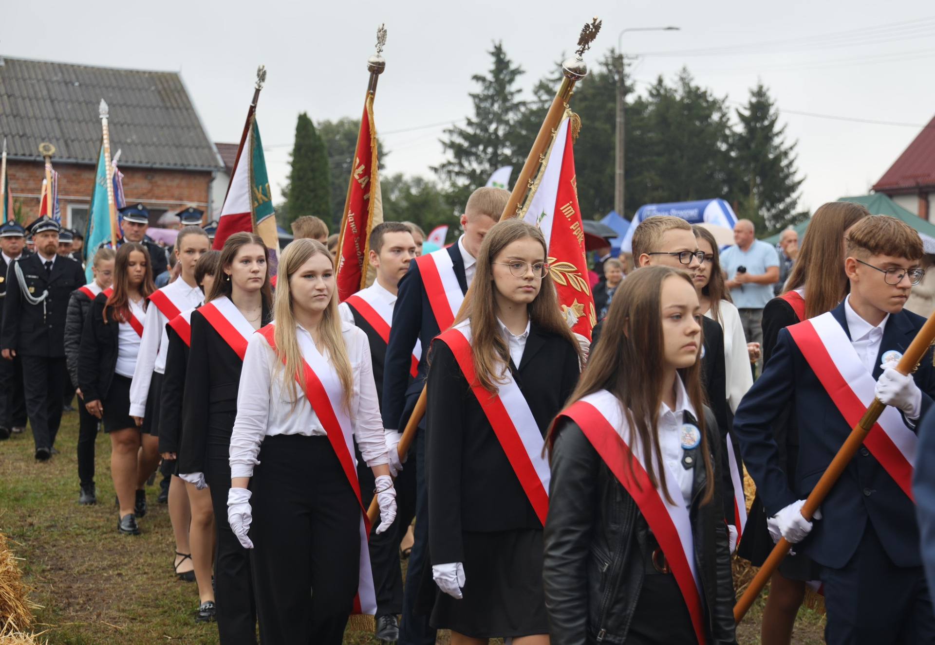 Następnie korowód prowadziły poczty sztandarowe Szkół: