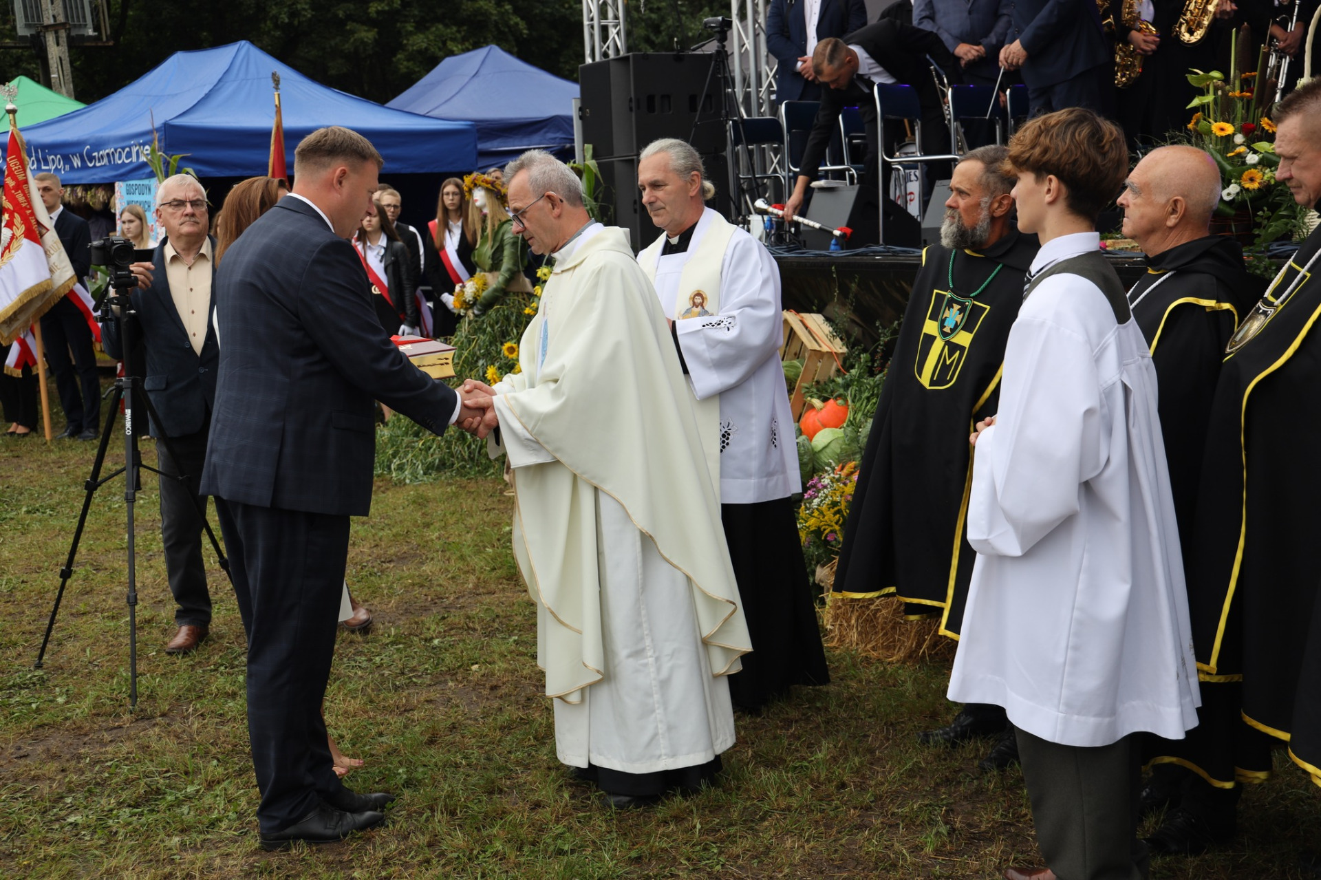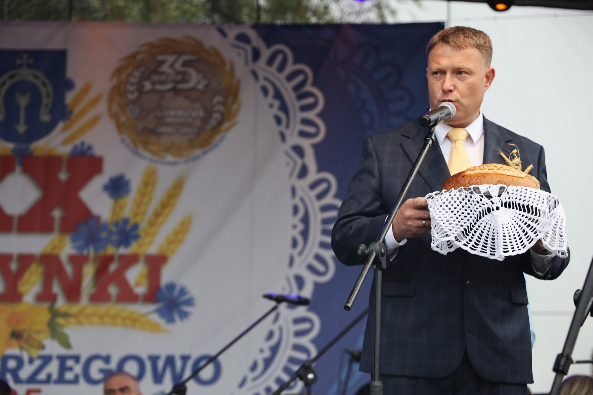 Na zakończenie mszy zgodnie z tradycją dożynkową przedstawiciele Samorządu Gminy Strzegowo oraz Instytucji podzielili się z uczestnikami uroczystości symbolicznymi chlebkami upieczonym z tegorocznego ziarna.