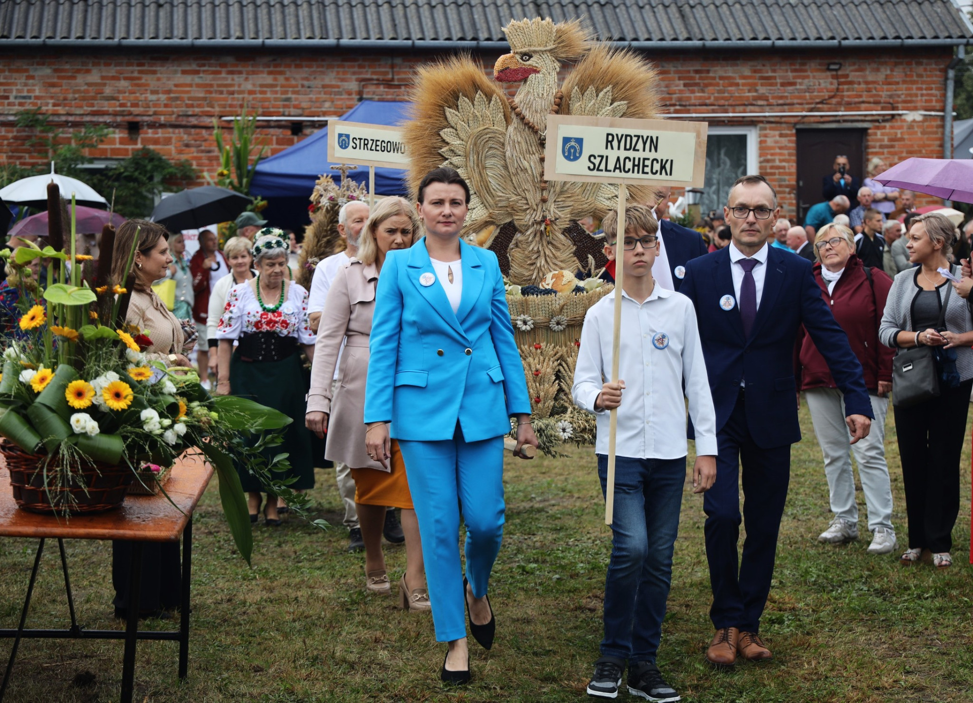 Uroczystości rozpoczęły się przemarszem Korowodu dożynkowego na czele z orkiestrą OSP Strzegowo pod dyrekcją kapelmistrza Pana Witolda Nowakowskiego.