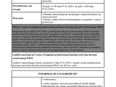 Komunikat GIOŚ (Powiadomienie o ryzyku wystąpienia przekroczenia średniodobowego poziomu alarmowego dla pyłu zawieszonego PM10 w powietrzu)
